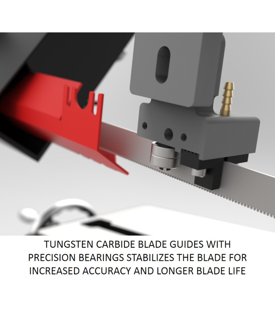 • Tungsten carbide blade guides with precision bearings, stabilizes the blade for increased accuracy and extends blade life