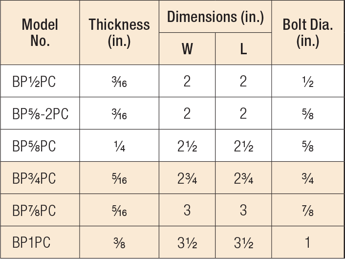 Simpson Bearing Plate 5/8" Hole, 2.5 x 2.5 Black Powder coated BP 5/8PC