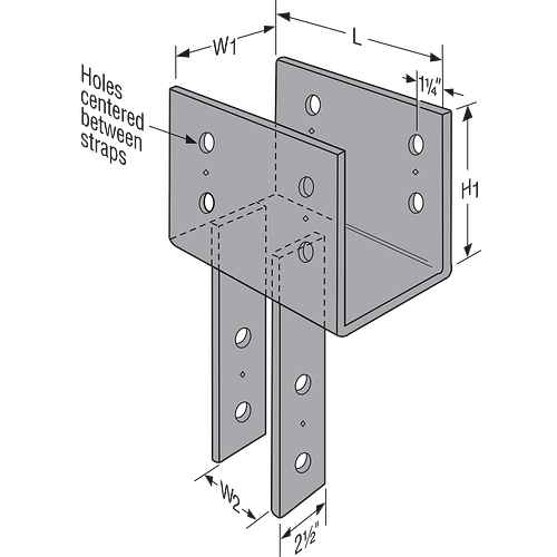 • For special, custom or rough-cut lumber sizes, provide dimensions. An optional W2 dimension may be specified. (The W2 dimension on straps rotated 90° is limited by the W1 dimension.)