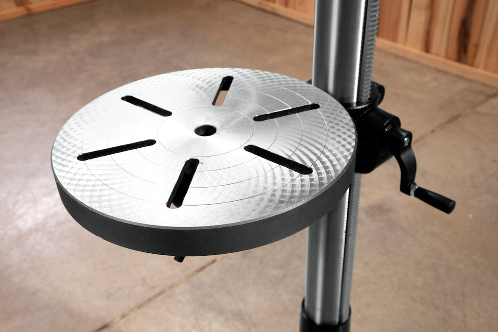 • Quick release crank operated worktable height adjustment rotates + or - 45° for versatility