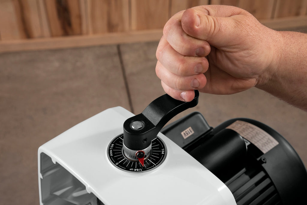 • The relative depth scale on the handwheel allows the user to reset and measure the depth for every project