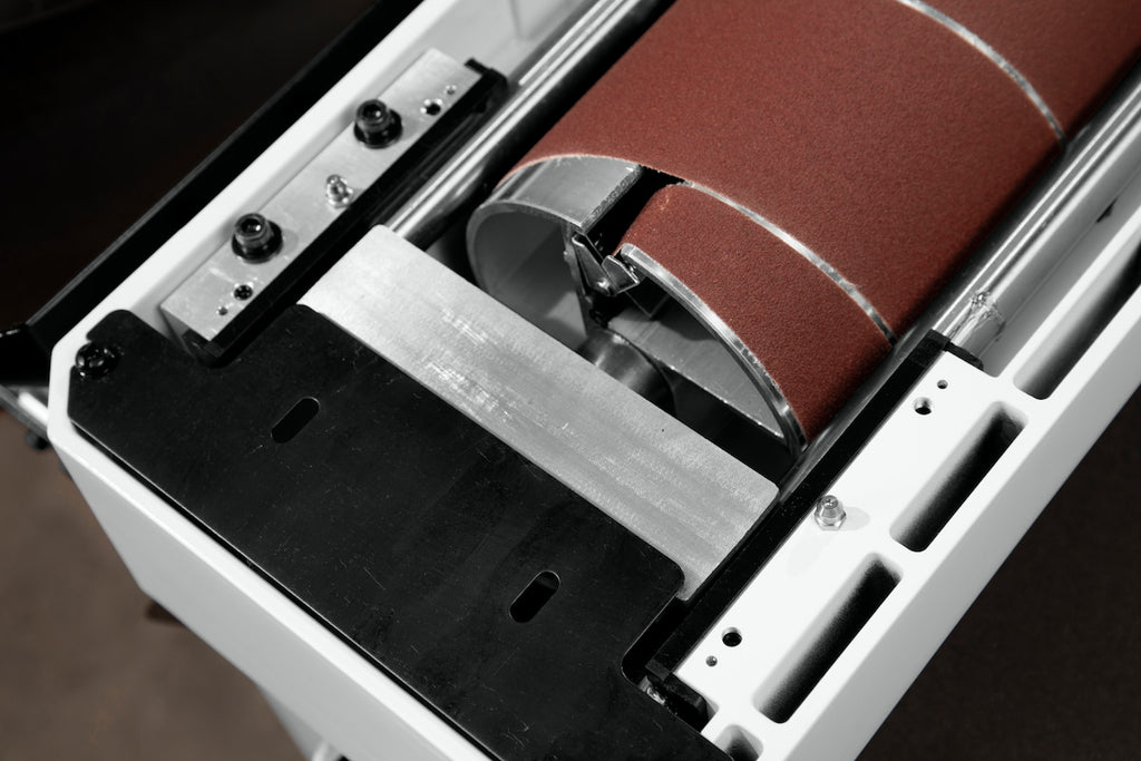 • Exclusive variable speed oscillating drum moves from left to right—minimizing visual scratch patterns in workpieces and increasing the lifespan of abrasive paper