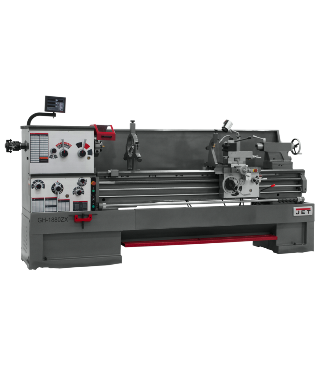 JET GH-1880ZX Large Spindle Bore Lathe w/Newall DP700 w/Taper Attachment & Collet Closer 460V