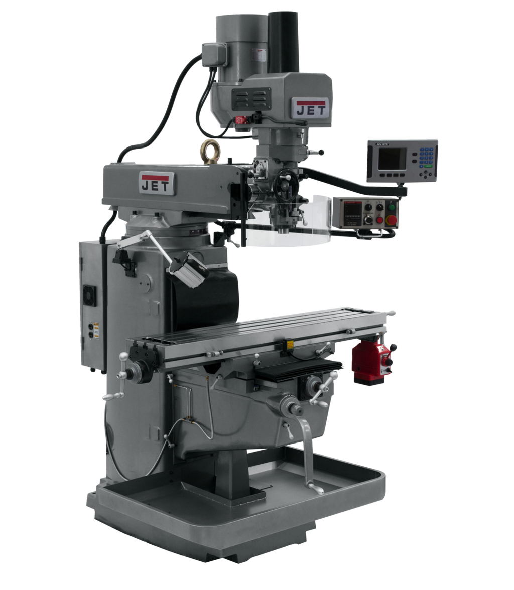 JET JTM-1050EVS2/230 Mill w/3-Axis Acu-Rite 203 DRO (Knee) w/X-Axis Powerfeed & Air Powered Draw Bar
