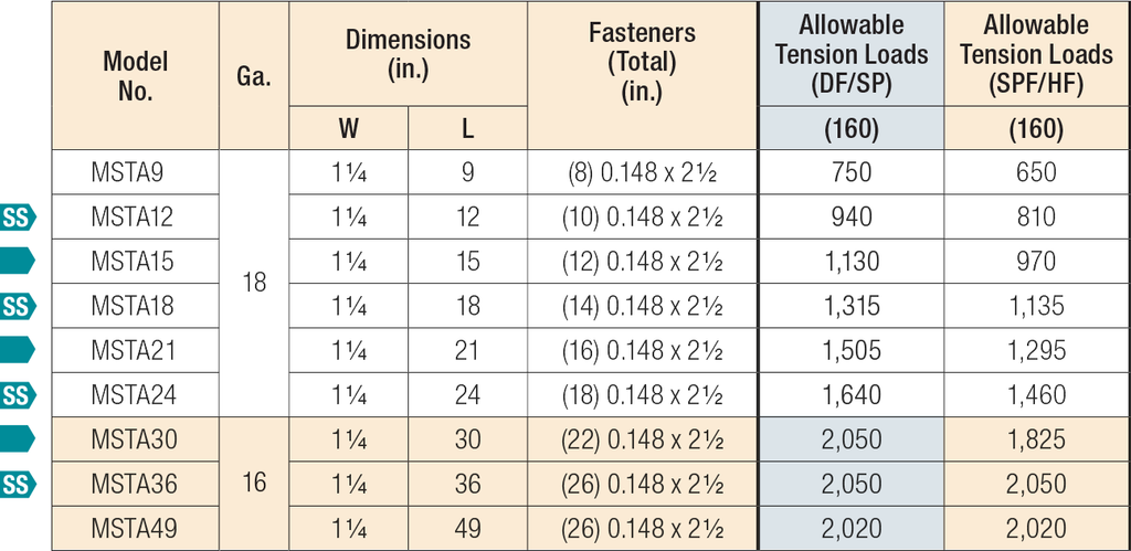 Simpson MSTA9 9 inch Medium Strap Tie G90 Galvanized 18-Gauge