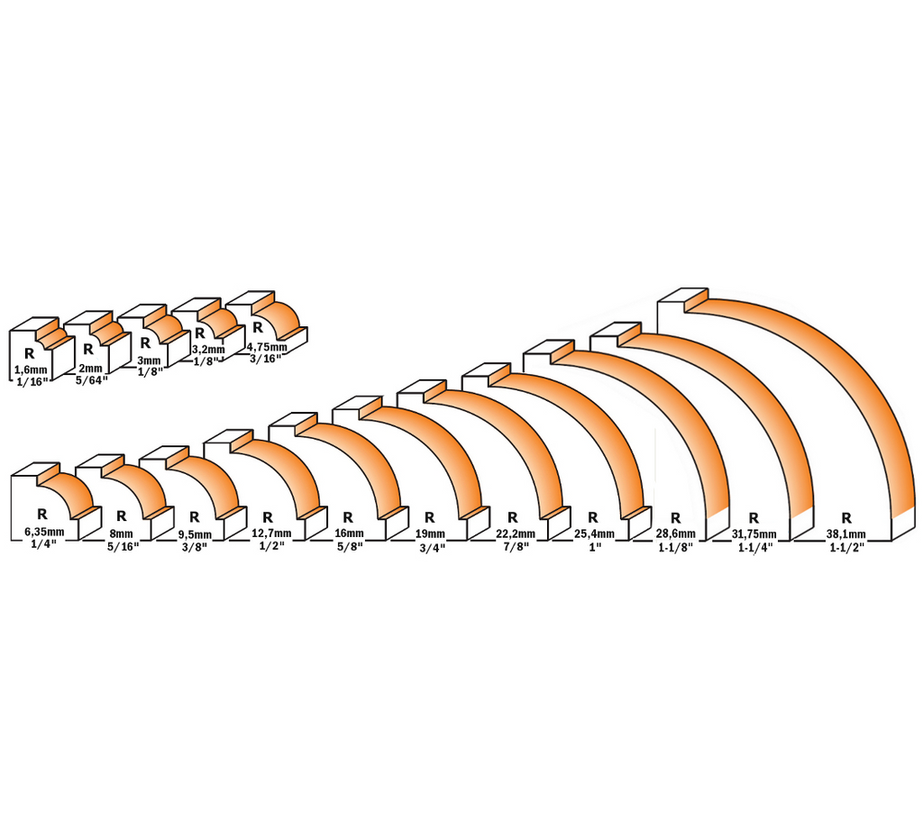 CMT 838.147.11 Solid Surface Rounding Over Bit 37/64" x 3/8" R=3/64" S=1/4"