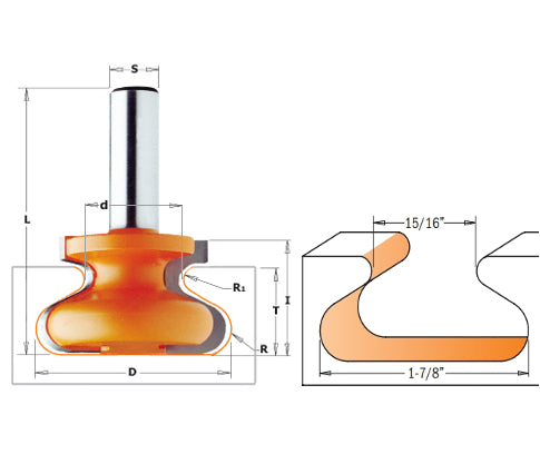 CMT 855.601.11 Finger Pull Bit 3/4" x 3/4" 15/16" R=3/16"-3/32" S=1/2"