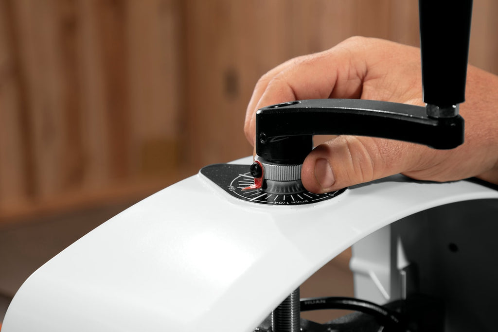 • The relative depth scale on the handwheel allows the user to reset and measure the depth for every project