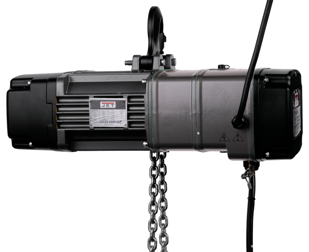 JET TS100-230-010 1-Ton 2 Speed Electric Chain Hoist 3Ph 10' Lift / 2 Speed Trolley 3Ph & 4 Button Wired Pendant 6ft